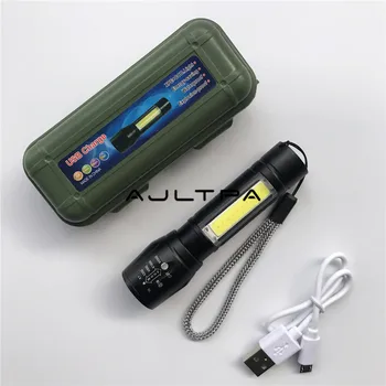 Product Name: 100pcs/lot USB Charge Mini Portable COB LED ZOOM Flashlight Outdoor Hunting Torch With Battery And Cable