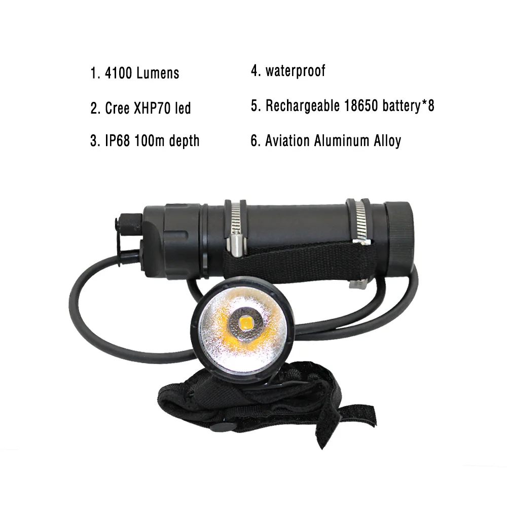 Product Name: Free Shipping 4000 Lm Canister XHP70 LED Diving Lamp With Yellow Color Diving Light With Built-in 8x18650 Li-battery D028