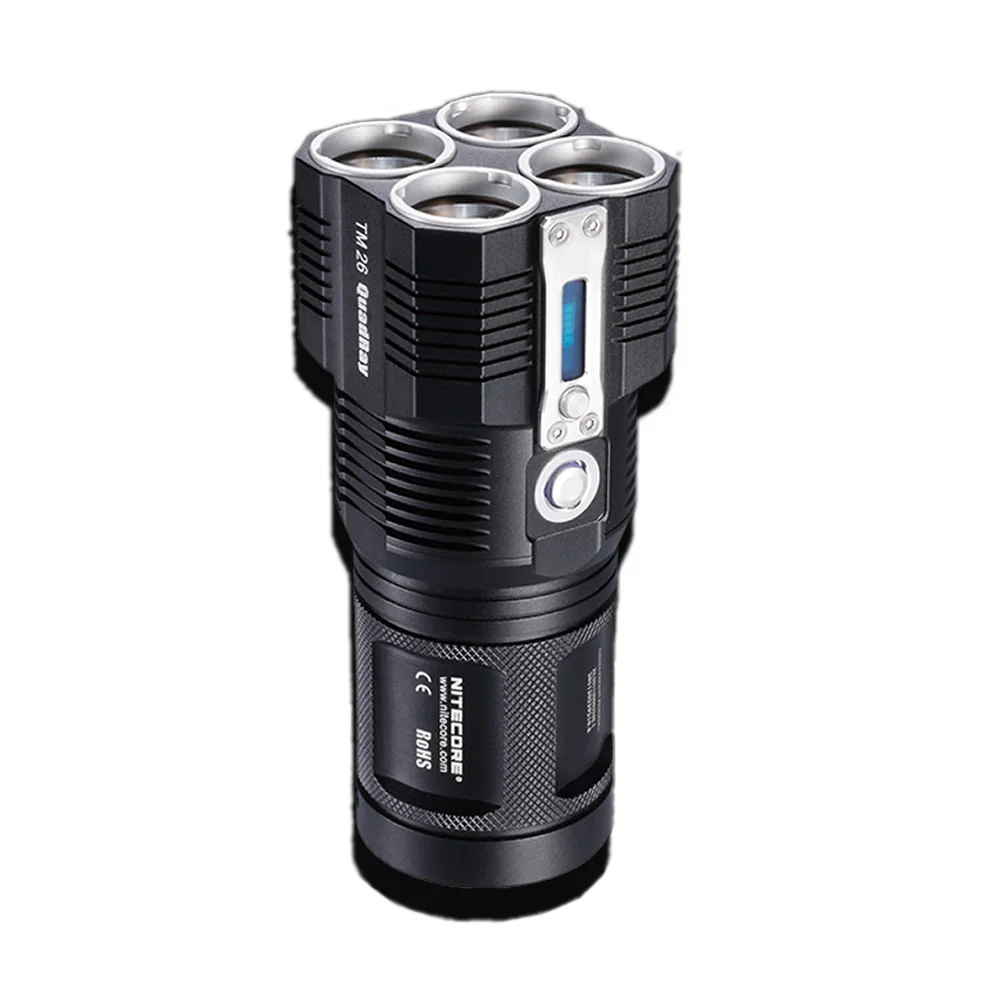 Best . (4% Off) Buy 2020 NITECORE TM26 4xLed 4000 Lumens 454M Distance Oled Display Searching Rechargeable Flashlight+4x18650 Battery+Free Shipping Price Online.
