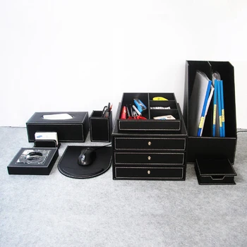 Special Offer 9Pcs /Set File Stationery Desk Organizer Pen Holder Storage Boxes Mouse Pad Writing Pad Wood PU Leather T89 Tissue Box File Rack Discount 0% Today!